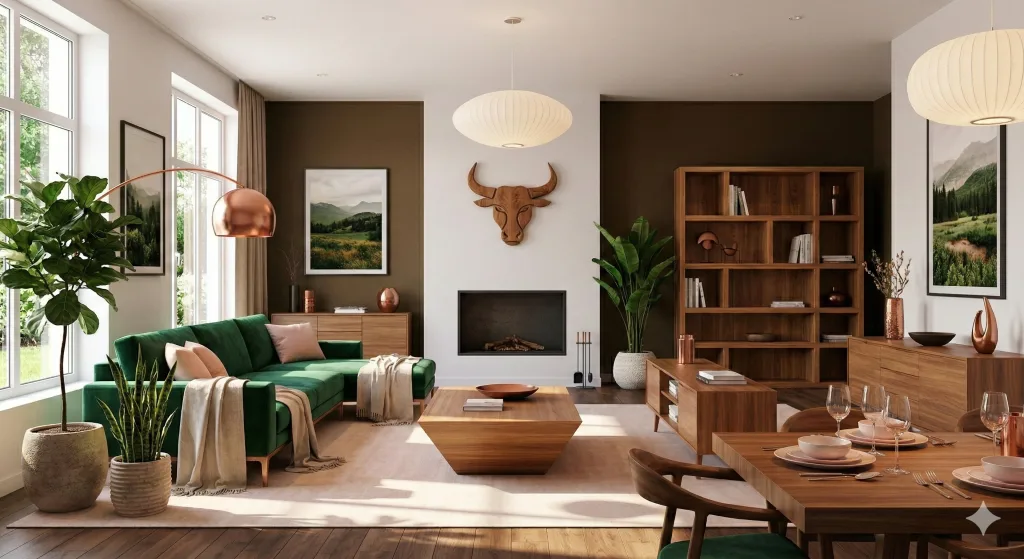 - Renk Paleti: Toprak elementinin en ciddi temsilcisi olan Oğlaklar için antrasit, koyu kahverengi, lacivert ve orman yeşili gibi ağırbaşlı renkler idealdir. Burçlara göre ev dekorasyonu yapılırken bu renkler, mekana güven verici ve köklü bir hava katar.