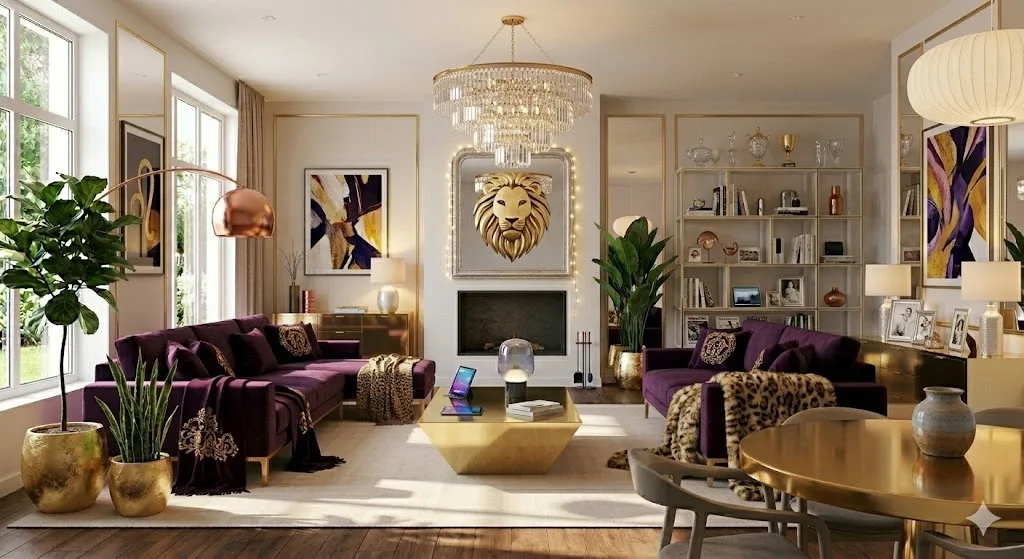 Aslan Burcu Ev Dekorasyonu, kapıdan giren herkesin hayranlık duyacağı, ışıl ışıl ve sıcak bir atmosfer sunar.